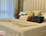 The finishes are high-quality: imported porcelain tile floors, a modular kitchen with granite countertops, a plaster-clad ceiling, and precious wood doors, among others.